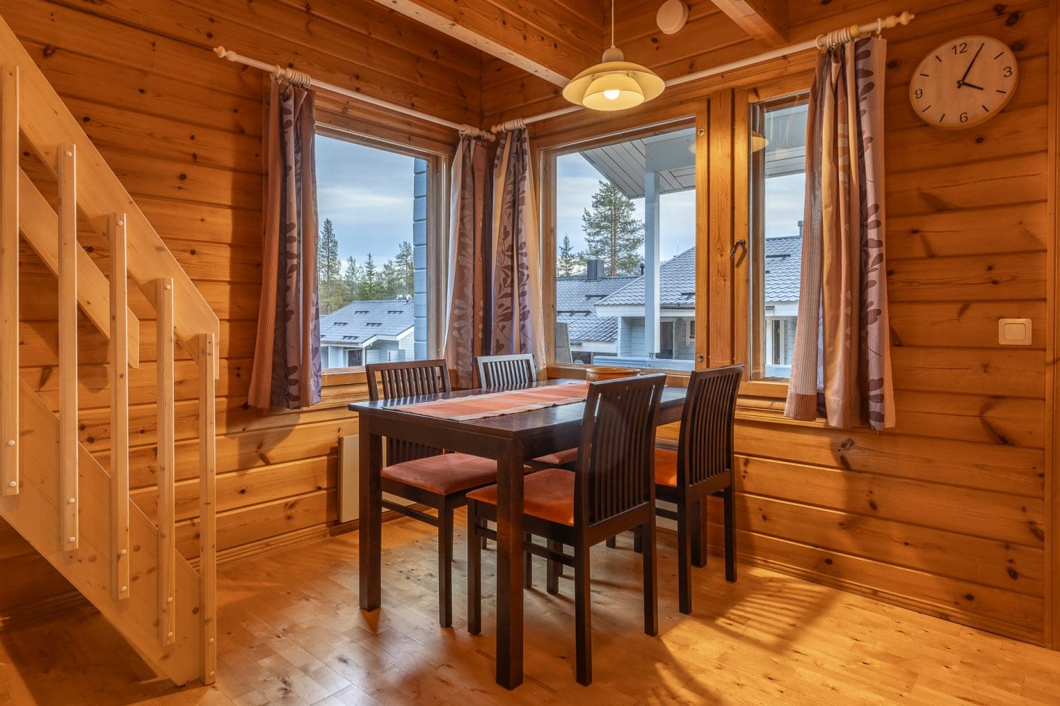 The semi-detached houses for six people are located at the upper boundary of the property, quite high up on the slope of Kuertunturi. Most of the apartments offer a view of the slopes of Ylläs.